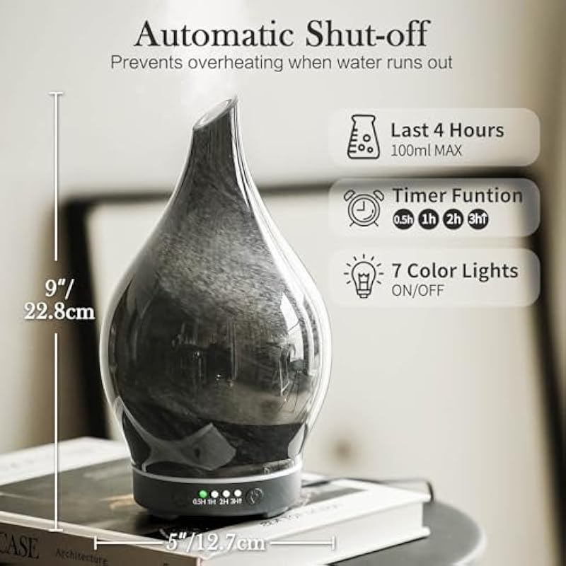 - UNIQUE ART DECOR – 150ml glass essential oil diffuser with star-shaped glass cover & wood grain base. Adds artistic harmony to your living space, perfect for bedrooms, living rooms, kids’ rooms, studies, offices, & yoga studios. Enhances ambience