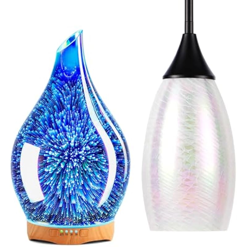 - UNIQUE ART DECORATIVE DESIGN – If you need an ornament in your home,this special handmade glass essential oil diffuser is your perfect choice,this aroma diffuser use glass cover and wood grain decorative base. It is extremely suitable for decorating your bedroom, living room, children’s room, study room, office and yoga room.