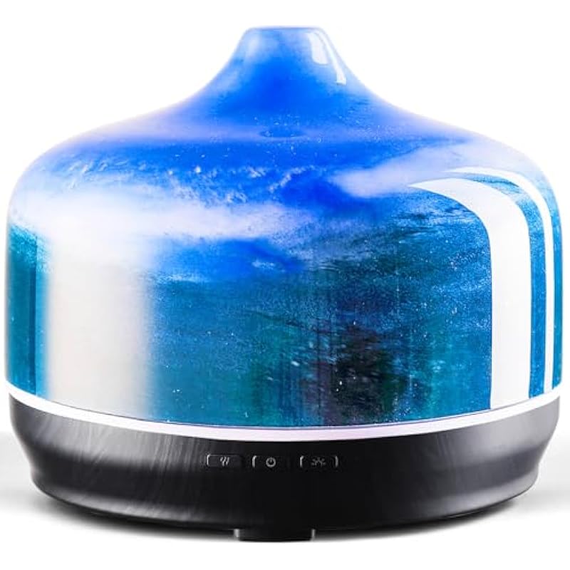 - HANDMADE GLASS DIFFUSER – Our 500ml Porseme diffuser, 6.5″ dia x 7″ h, crafted from hand blown glass. Lasts 15-21 hours with a good fog effect. Perfect for rooms up to 500-1000 square feet. Ideal for relaxation & unwinding