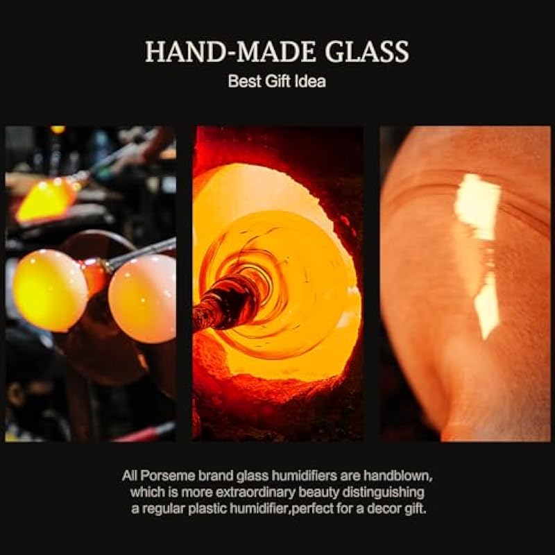- HANDMADE GLASS DIFFUSER – Our Porseme 280ml aroma diffusers are 6” in diameter and 11” in height. They are handblown glass so each glass globe is unique. 280ml essential oil diffuser lasts for 7 hours and has a good output of mist. Fits a room not larger than 15*15(ft). You can place in any area and relax.