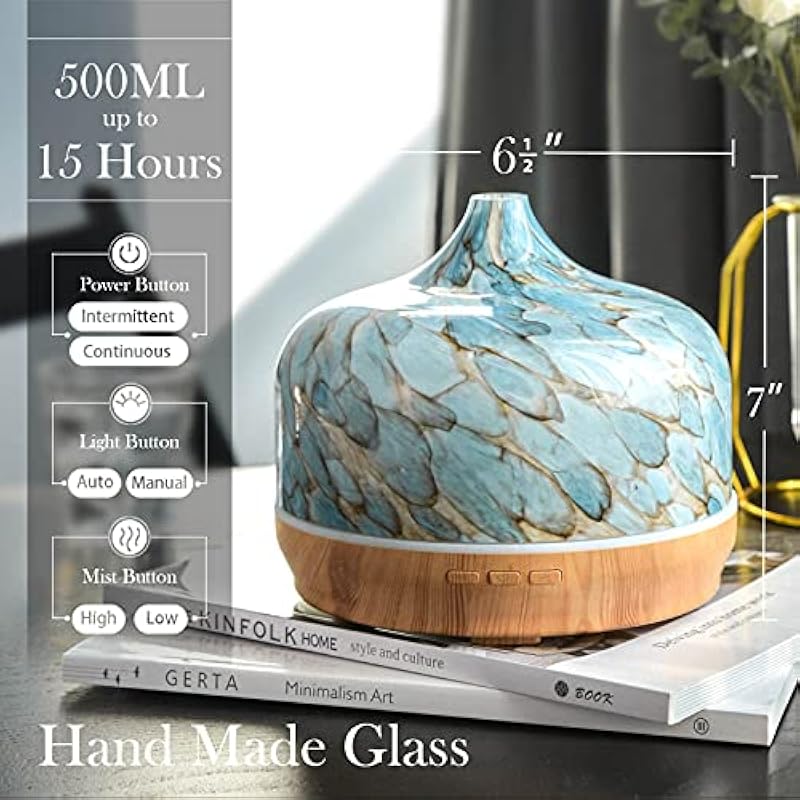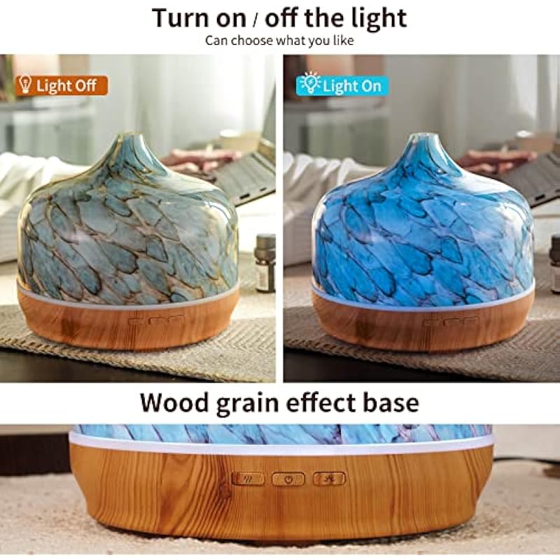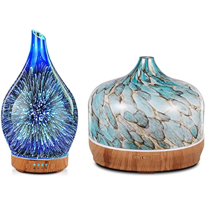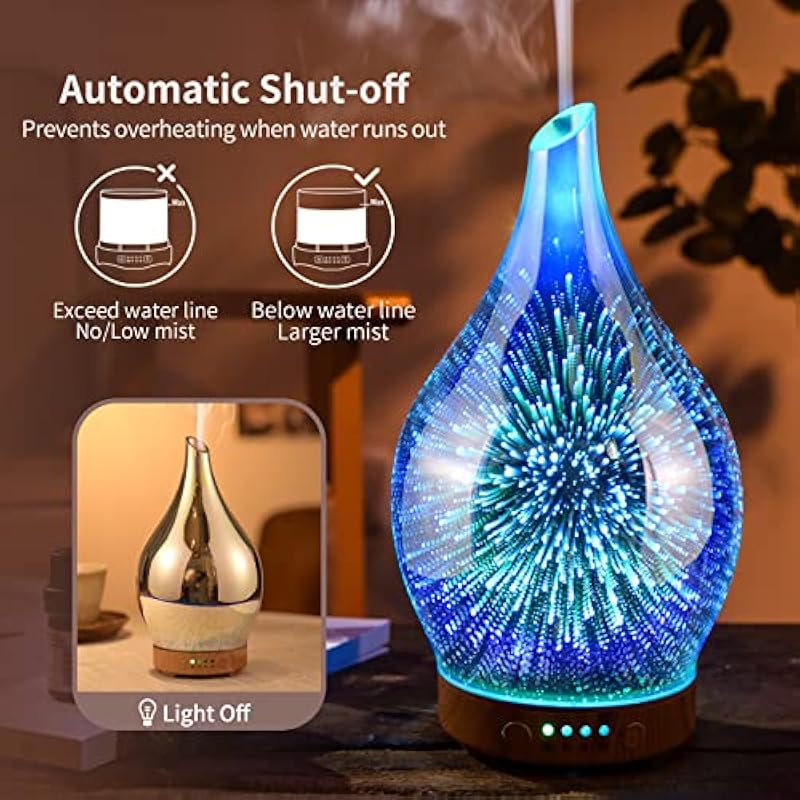- Unique Art Decorative Design: Our glass essential oil diffuser has an firework 3D effect glass cover and wood grain decorative base. It is very suitable for your bedroom, living room, children’s room, study room, office and yoga room.