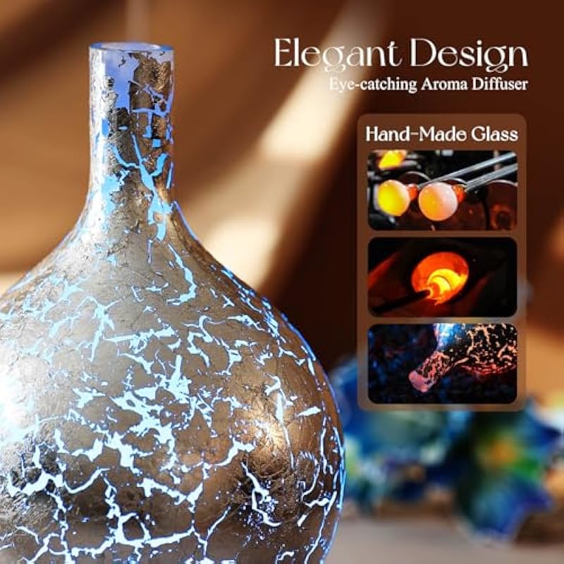 - HIGH QUALITY AND SAFETY – BPA-free material with hand-blown glass globe. After you drop several essential oils that will release cool mist to fill everywhere.