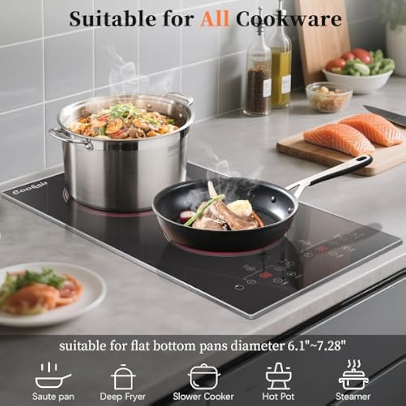 - 【2 Burner Cooktop Compatible with All Cookwares】12 inch electric ceramic hob is suitable for all kinds of cookwares, such as stainless steel pan, copper pot, glass pot, casserole. You just need to make sure the bottom of them is flat. Cooksir electric stovetop has 2 burners(1400W+600W), which can cook different delicious food at the same time. You can enjoy your cooking skills, fry, cook and steam together to make a table of delicious dishes.