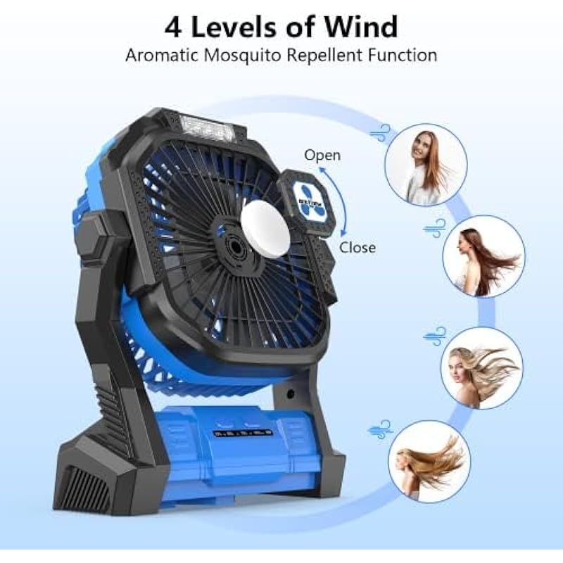 - Multi-functional Design: The air outlet angle of the camping fan can be manually rotated by 270°, which allows you to get quiet and strong airflow from different directions, keeping the tent cool and ventilated. Just easily pouring the aromatherapy oil into the aromatherapy cotton pad, the upgraded aromatherapy function will make your sleep more restful and peaceful