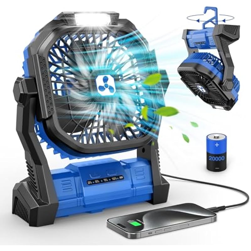 - Strong Wind & Quiet Design for Battery Powered Fans: This portable fan comes with 4 adjustable wind speeds to meet different needs and keep you cool at home or for travel like camping. The brushless motor and upgraded fan blades operate efficiently with minimum noise, and you will have a calm and peaceful experience thanks to its noise level of ≤ 30Db. (dimensions: 10.9*8.9*3.8in, 1.8lb)