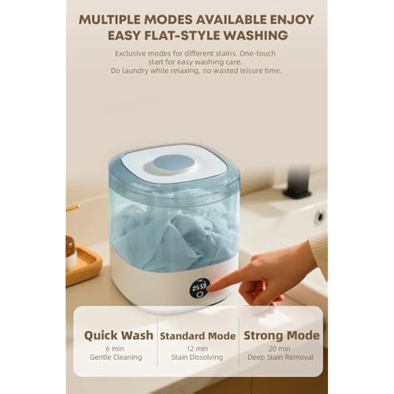 - 【Versatile 3-Mode Cleaning】Easily switch between 6-minute quick wash, 12-minute standard cycle, or 20-minute intensive cleaning. Whether it’s baby clothes, delicates, or small towels, this mini washer adapts to different laundry needs at the press of a button.