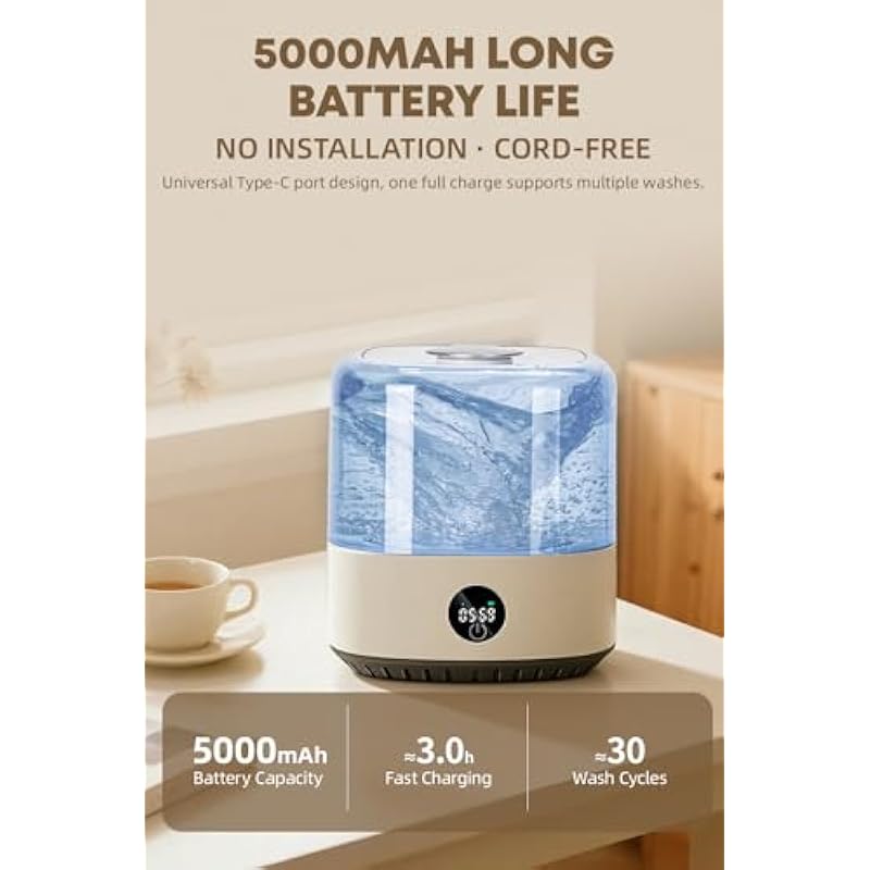 - 【Extended Battery Life with Rapid 3H Charging】Powered by a 5,000 mAh rechargeable battery, this portable washer handles up to 30 quick cycles on a single charge. The 3-hour fast recharge feature minimizes downtime, so your laundry routine stays efficient and uninterrupted.