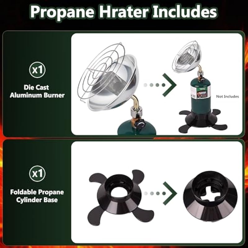 - Adjustable Temperature Camping Heater: Stay warm indoors and outdoors with our portable propane radiant space heater. By rotating the control knob clockwise, allowing you to fine-tune the temperature from gentle warmth to higher heat levels to meet a variety of comfort needs. Whether you’re in your garage, tailgating, ice fishing, hunting, camping, traveling, hiking, or enjoying any outdoor activity, this portable propane heater provides reliable, convenient heat quickly, ensuring you’re comfortable in any environment.