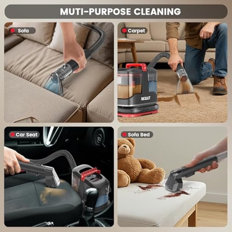 - 【 All-IN-ONE FUNCTION】 The NIQULIT Portable Carpet & Upholstery Spot Cleaner is equipped with a 450W motor, which provides an ultra-strong suction power of 15Kpa, capable of cleaning deeply on the carpet surface. By spraying, brushing, and suction steps, our upholstery cleaner effortlessly tackles food spills, pet stains, and embedded dirt, making it the ultimate carpet cleaner and spot cleaner for any household.