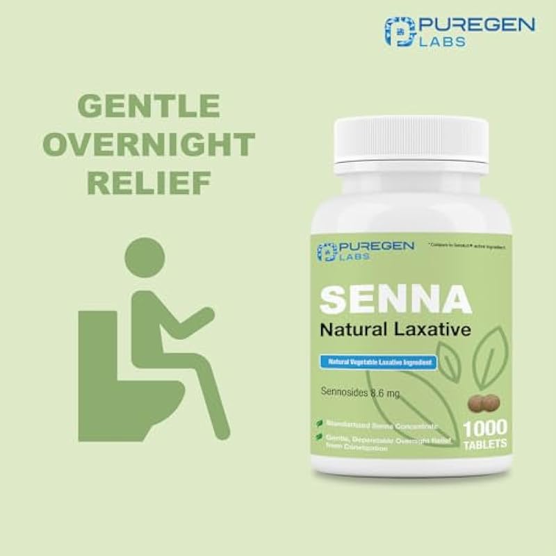Puregen Labs Senna 8.6 mg Tablets (1000 Count) – Natural Sennosides Vegetable Laxative for Constipation, Bloating, Gas, Irregularity Relief