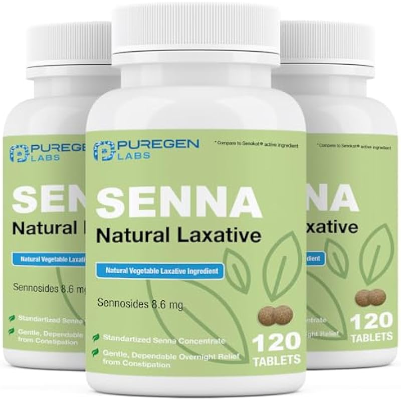 Puregen Labs Senna 8.6 mg Tablets (120 Count) – Natural Sennosides Vegetable Laxative for Constipation, Bloating, Gas, Irregularity Relief