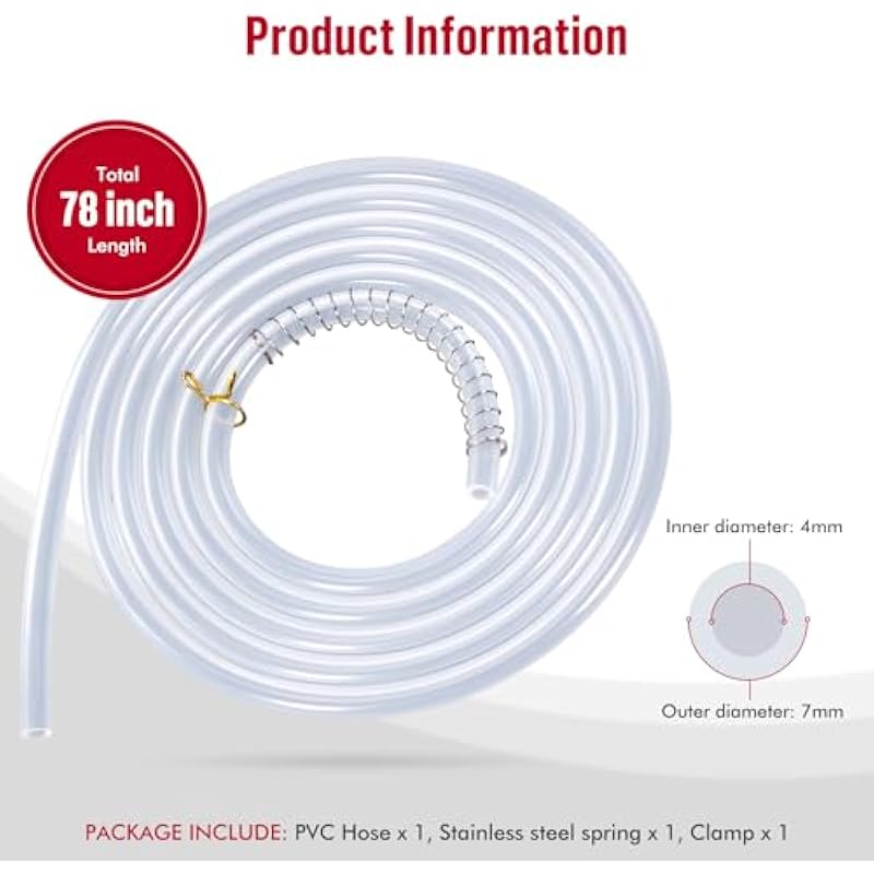 - Package Included: 1pcs 78.74in long hose(The inner diameter of the hose is 0.157in), 1pcs 0.02*0.35*3.15in stainless steel compression spring, 1pcs 0.315in clamp. The length of the water pipe can be flexibly trimmed according to your needs. You can cut it according to the needs of your cordless portable carpet upholstery spot cleaner machine.