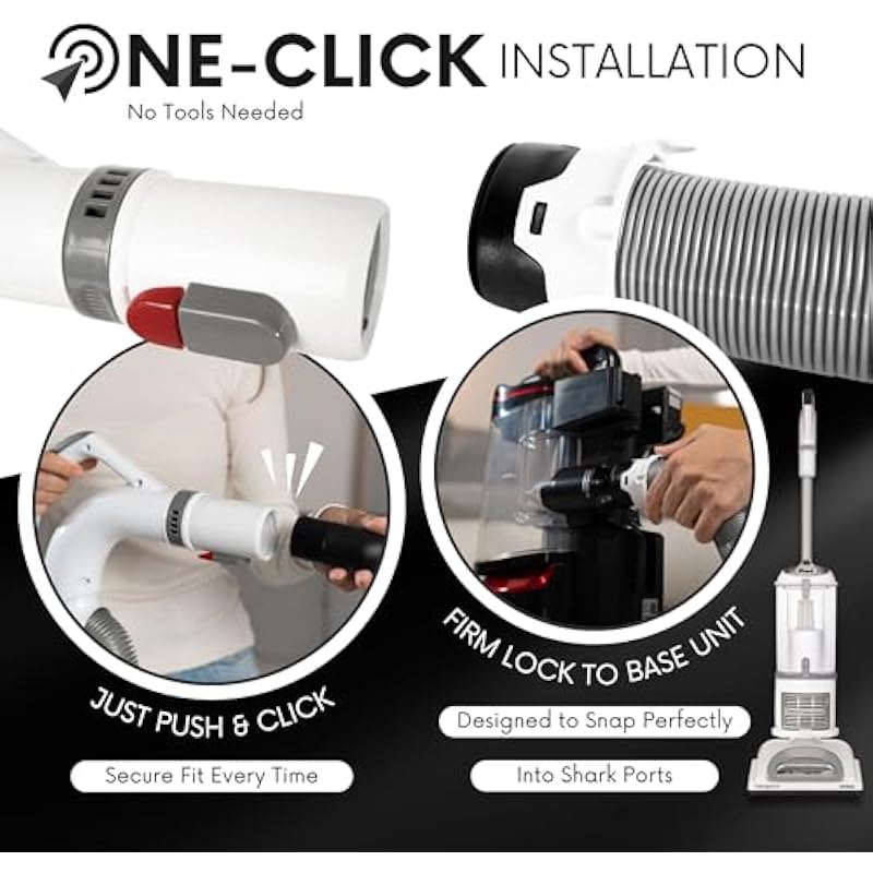 - PERFECT CLICK. Get you Shark Vacuum up and running again with Our deluxe replacement Hoses. These Selgo Vaccum attachments are Quick and easy to install without any extra tools parts or pieces, just a single click and its done!