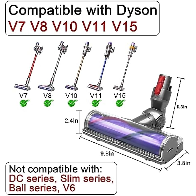 - Perfect Compatibility:The dyson brush head replacement is ONLY compatible with Dyson V7, V8, V10, V11. Not for V6 or any DC or Slim or Ball series