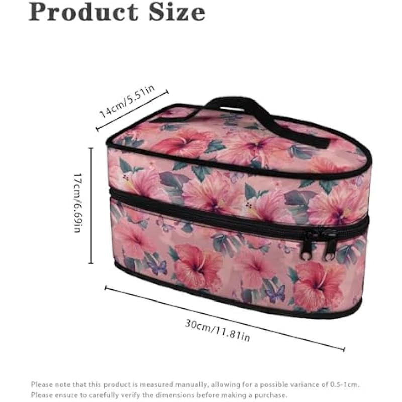 Rchsmod Butterfly Hibiscus Print Steam Iron Case Lightweight Steamer Organizer Portable Iron Storage Bag with Handle Zippered Travel Case Iron Accessories, Case Only