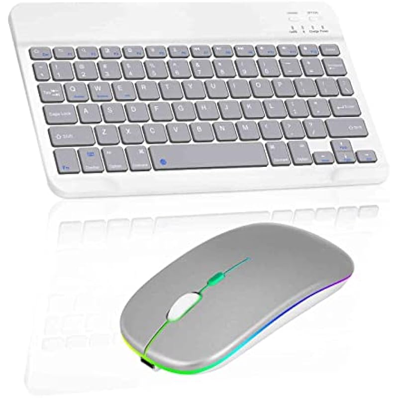 Rechargeable Bluetooth Keyboard and Mouse Combo Ultra Slim for Samsung Galaxy Tab A8 10.5 (2021) and All Bluetooth Enabled Android/PC-Stone Grey Keyboard with Silver RGB Led Mouse