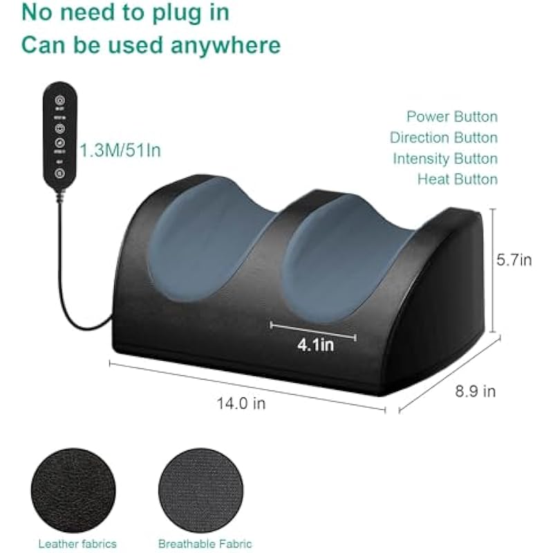 - Easy to Use & Move: Cordless foot massager comes with a cord control (1.3 m / 51 in), no need to be tied down in one place like traditional foot massagers, no need to bend over to touch the controls to turn the product on and off, perfect for travel or office use without cords