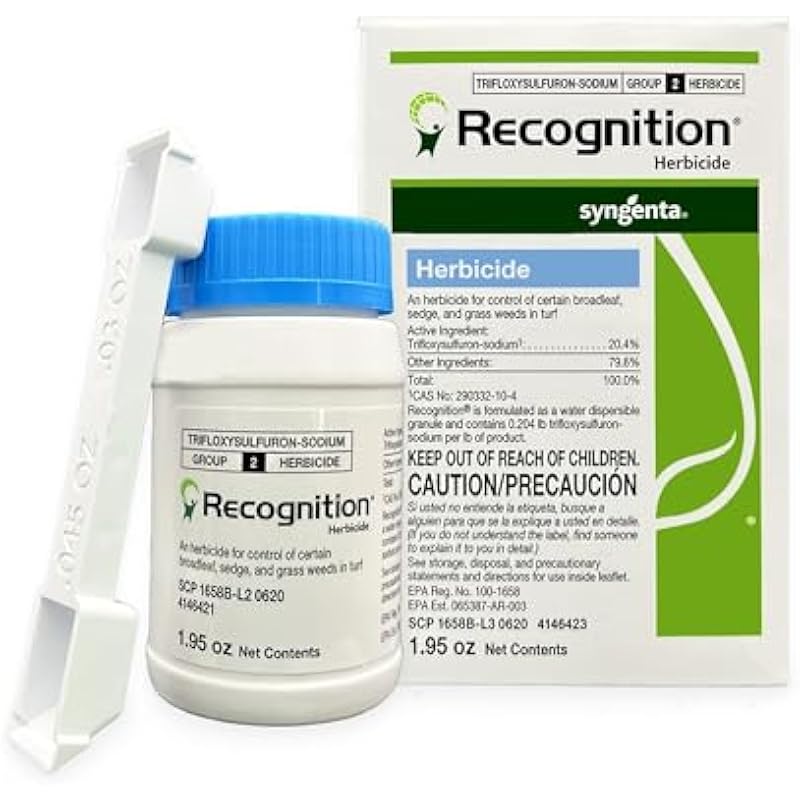 - POWERFUL BROAD-SPECTRUM CONTROL: Applied at 1.29-1.95 oz./acre, Recognition selectively controls sedges (including yellow and puple nutsedge), kyllingas, grasses and broadleaf weeds (dollarweed / lawn pennywort, spotted spurge, wild garlic, carpetweed)