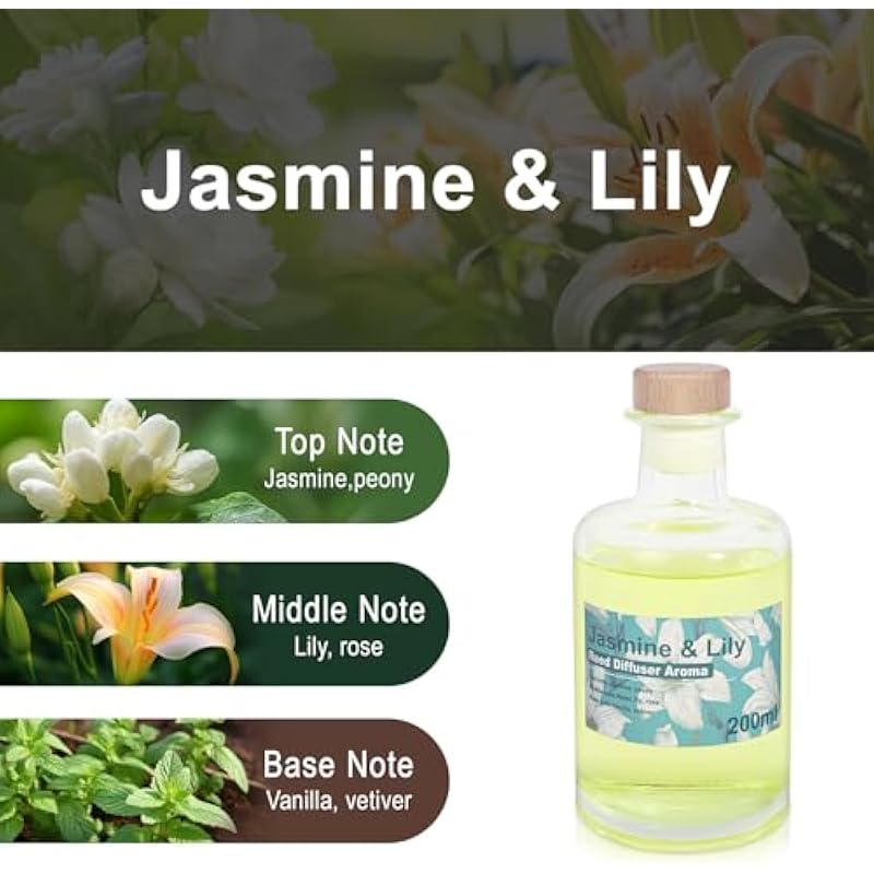 - [ Jamine & Lily Fragrance ] – Top Note: Jasmine, peony. Middle Note: Lily, rose. Base Note: Vanilla, vetiver. The Jamine, Lily flowers and Vanilla essential oil emits fresh floral and grass fragrance. APPROX. 90-120 days long lasting