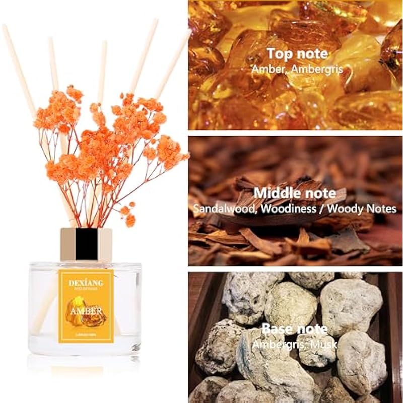 Reed Diffuser Set – 3.38 fl oz (100ml) Amber Home Fragrance Reed Diffuser for Bathroom Shelf Decor 6 Reed Stick