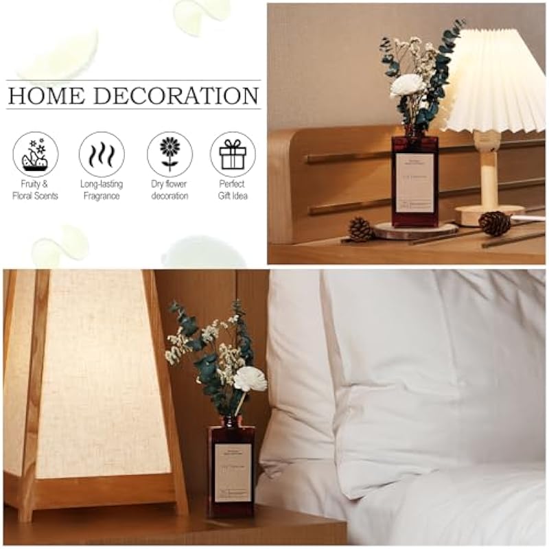 - Paired with Exquisite Dried Flowers – The reed diffuser is paired with meticulously preserved dry flowers, adding a natural floral and fruity aroma to the scent, and adding a touch of natural beauty to the design. These flowers enhance the visual appeal of the aromatherapy bottle and can be used as decorations for rooms or offices.