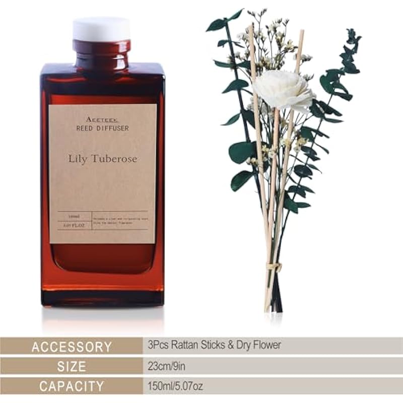 | Special Feature | 150ml/5.07fl oz large capacity, Combination of dried flowers and aroma, Long Lasting Aroma, Quick expansion of fragrance, Unique styling design |