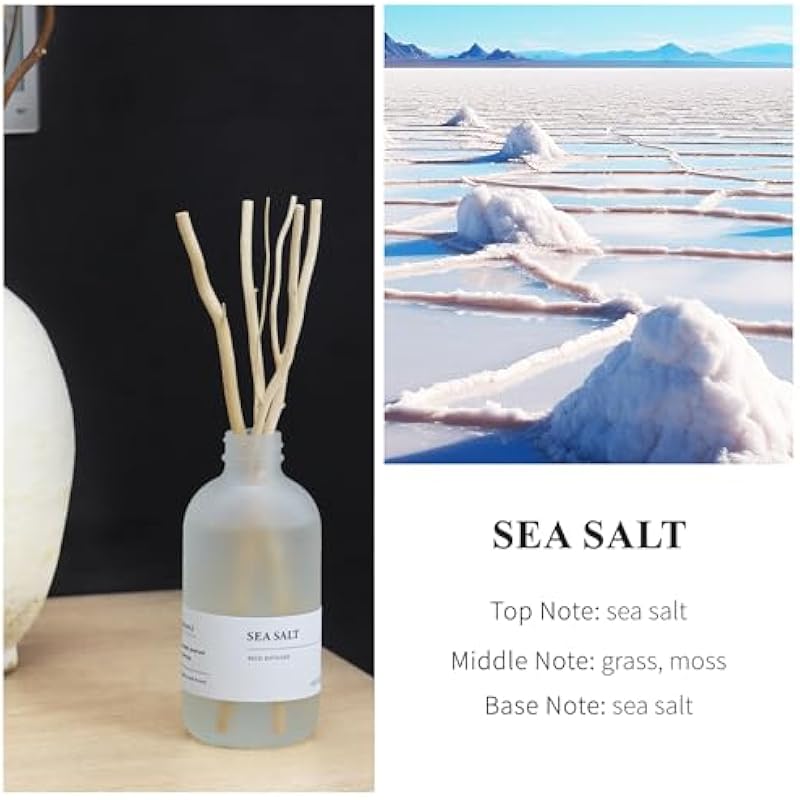 - [Sea Salt Scent] Top Notes: sea salt. Middle Notes: grass, moss. Base Notes: sea salt. The pure sea salt, sea grass and moss essential oil emits a fresh sea mist fragrance. APPROX. 90-120 days long lasting aroma