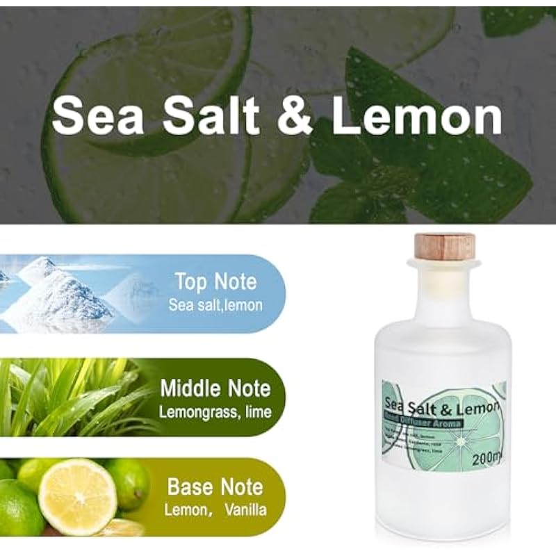 - [ Sea Salt & Lemon Fragrance ] – Top Note: Sea salt, lemon. Middle Note: Lemongrass, lime. Base Note: Vanilla. Sea Salt and Lemon essential oil emits fresh fruits and sea salt fragrance. APPROX. 90-120 days long lasting