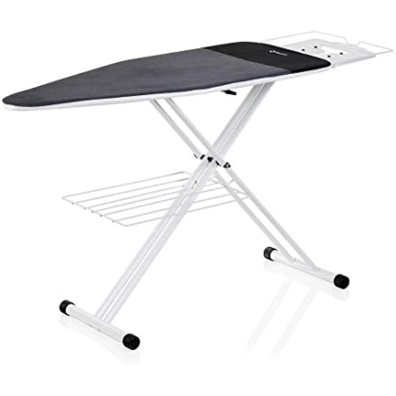 Reliable 220IB Home Ironing Board – Made In Italy Portable Ironing Board with Vera Foam Memory Foam Cover Pad and Conex Heat Resistant Zone, 7 Step Height Adjustment, Strong Iron Rest and Laundry Rack