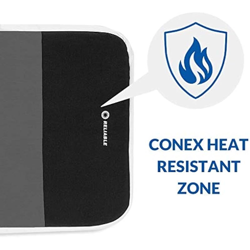 - Conex Heat Resistant Zone – Allows you to place your iron on the board with no worries. This safe zone is heat resistant to over 400°F and is a flame retardant. Simplify your ironing experience with a Conex Heat Resistant Zone
