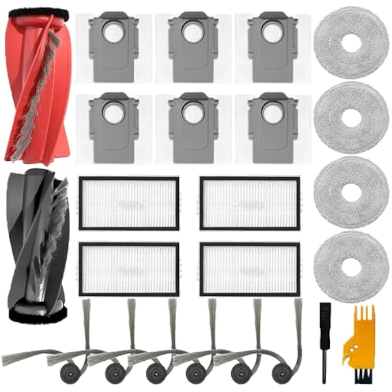 - Packages and service:There are 1pcs main brush, 4pcs filters, 6pcs mop pads,6pcs side brushes, 6pcs dust bags, a cleaning brush and a screwdriver to install side brush Thank you for supporting on us, if you have any questions about the product, please contact us and we will reply within 24 hours to help you solve any problems