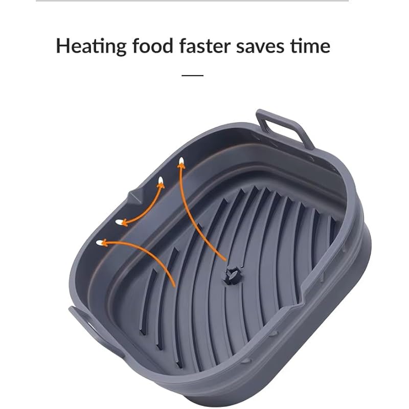 Reusable Silicone Air Fryer Liner – Square, Collapsible, Oil-Draining Design, Food-Grade, Non-Stick, Heat Resistant, Dishwasher Safe – Fits 5–8 QT Baskets (Grey)