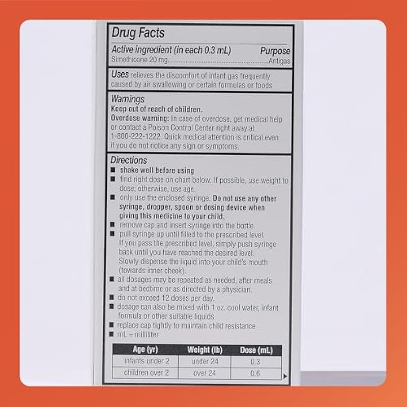 - GENTLE SUPPORT: Our dye-free drops are safe for little stomachs, offering relief without preservatives, alcohol, saccharin, and artificial colors or flavors. These drops are formulated with 20 mg of Simethicone, an anti-foaming agent that helps reduce gas buildup in the stomach and intestines.