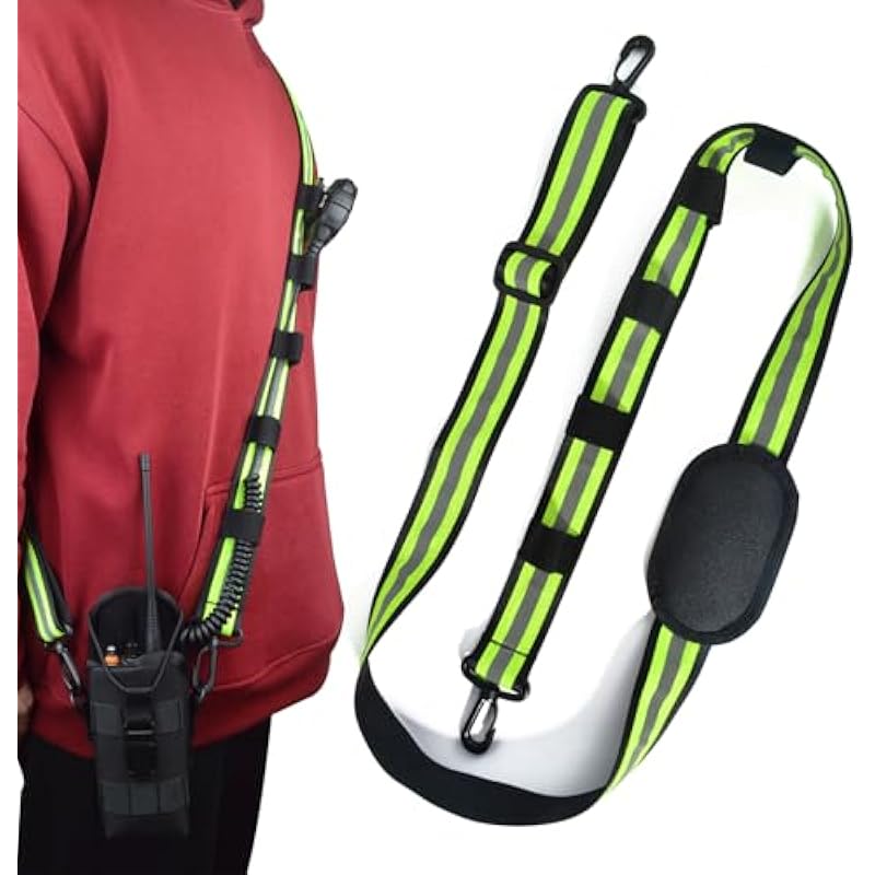 Safety Reflective Adjustable Radio Bag Shoulder Strap with Mic Cable Clip Stripes for Two-Way Radio Pouches