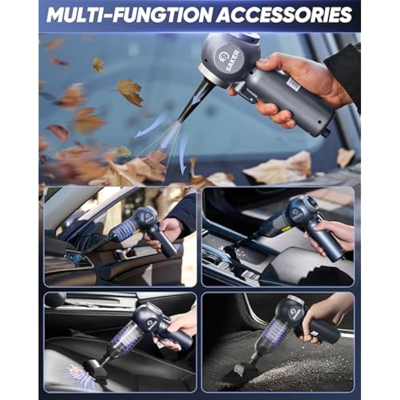 - 【Practical and Complete Accessories】The handheld car vacuum includes:Car vacuum cleaner*1,Floor brush*1,HEPA filter*2,Storage bag*1,Air extraction nozzle*1,UsB charging cable*1,Short blowing nozzle*1,Flat suction brush*1,Long flat suction*1,Pipe blowing round brush*1,Long blowing pipe*1,Small inflator nozzle*1,Large inflator nozzle*1