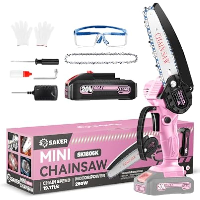 - Portable And Women Friendly – Saker mini chainsaw is slim and lightweight which weighs only 2.5lbs, just 18% of the weight of a bulky gas chainsaw.It’s incredibly easy to handle, making it suitable for the elderly and women. Unlike full-sized chainsaws, there’s no need to deal with dragging an electrical cord around.Saker mini chain saw cordless is lighter and easier to handle.