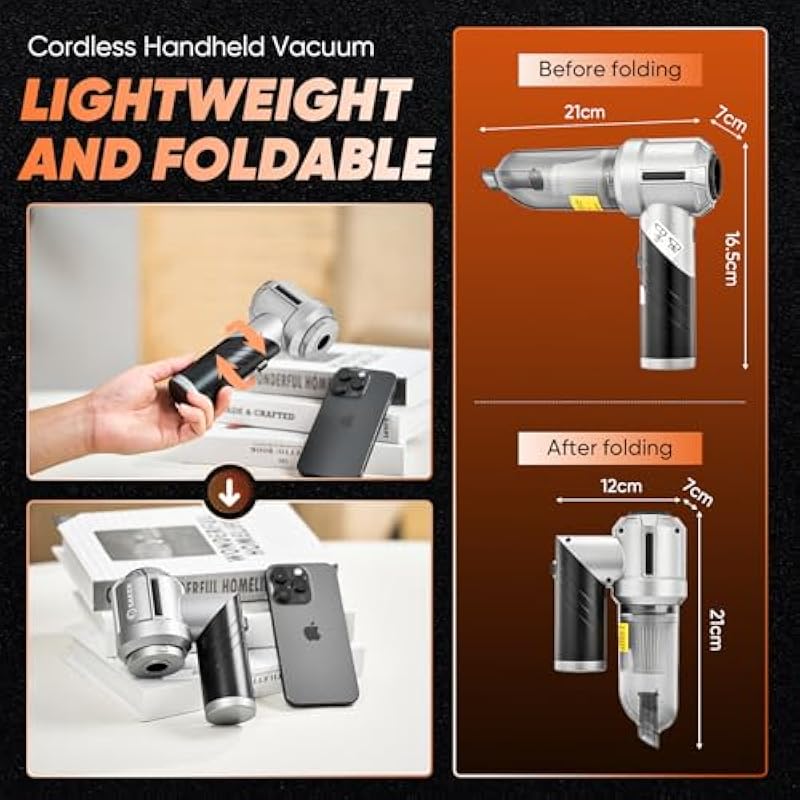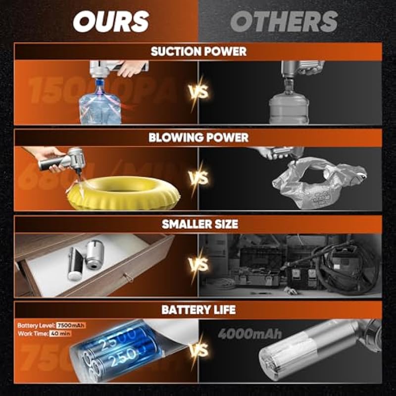 - 【Practical accessories】The included accessories can easily clean hard-to-reach corners, and the sleeve with a brush can easily remove stubborn dust in the gaps. With the blowing accessory set, you can quickly inflate the swimming ring and kayak, and you can also help with combustion in outdoor barbecues, help carpenters blow away sawdust, and vacuum storage bags. Rich accessories can make your life more convenient.