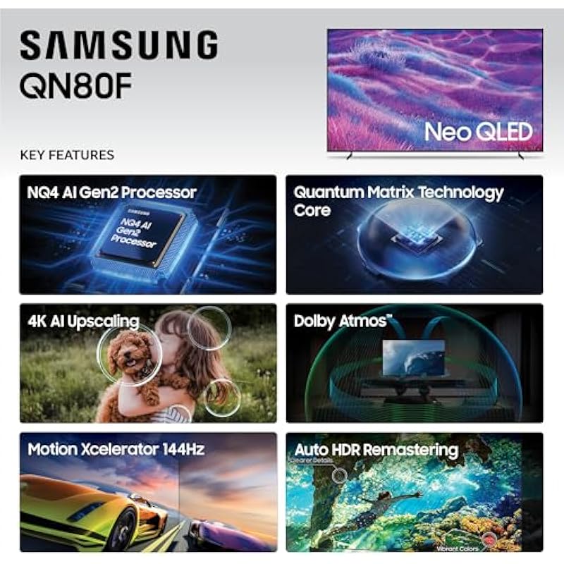 Samsung 85-Inch Class Neo QLED 4K QN80F Series, Vision AI, Mini LED Smart TV (2025 Model, 85QN80F) Neo Quantum HDR, Object Tracking Sound Lite w/Dolby Atmos, NQ4 AI Gen2 Processor, Alexa Built-in