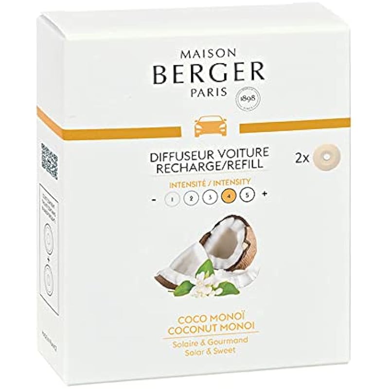 Set of 2 Car Odor Diffuser Refill – Ceramic System – 4/6 weeks Ceramic Diffusion Time – Lampe Berger Fragrance – Made in France (Coco Monoi)