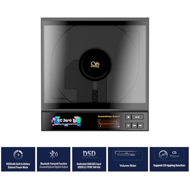 - 【R2R DAC & Dual Tube HiFi CD Player】 SHANLING EC Zero T audiophile CD player combines advanced R2R DAC architecture with dual JAN6418 vacuum tubes, delivering warm, natural analog sound with ultra-low distortion. This unique design offers audiophiles a distinctive musical experience through a portable CD player