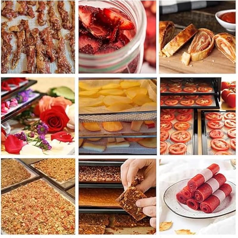 - Multi Usage: The Fruit Dryer Sheet is wonderful for drying fruit, grains and vegetables, making fruit peels, beef jerky, fruit rolls and more. It’s can used with dehydrators and air fryer, but Not suitable for oven.