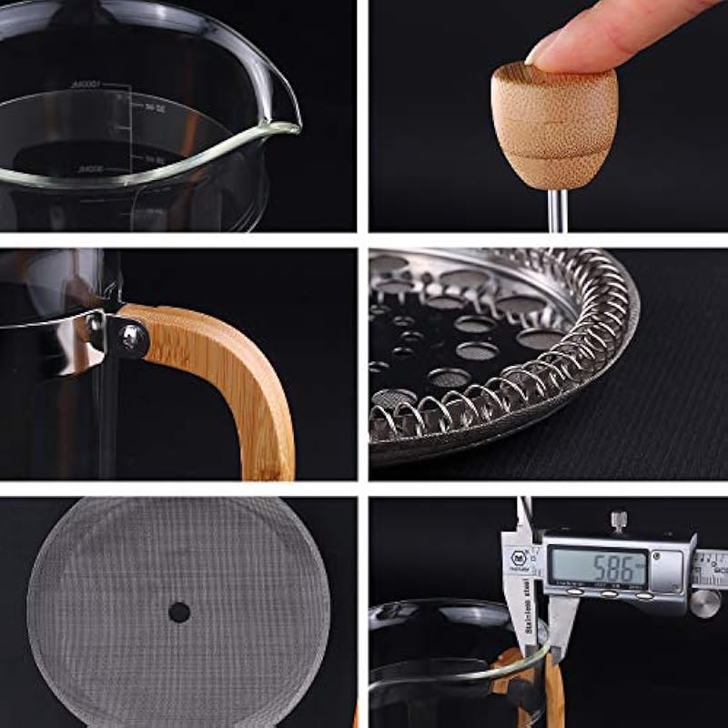 - Modern and Retro Stylish–The cafetera francesa design incorporates both natural Bamboo color and morden stainless steel frame.