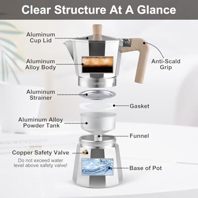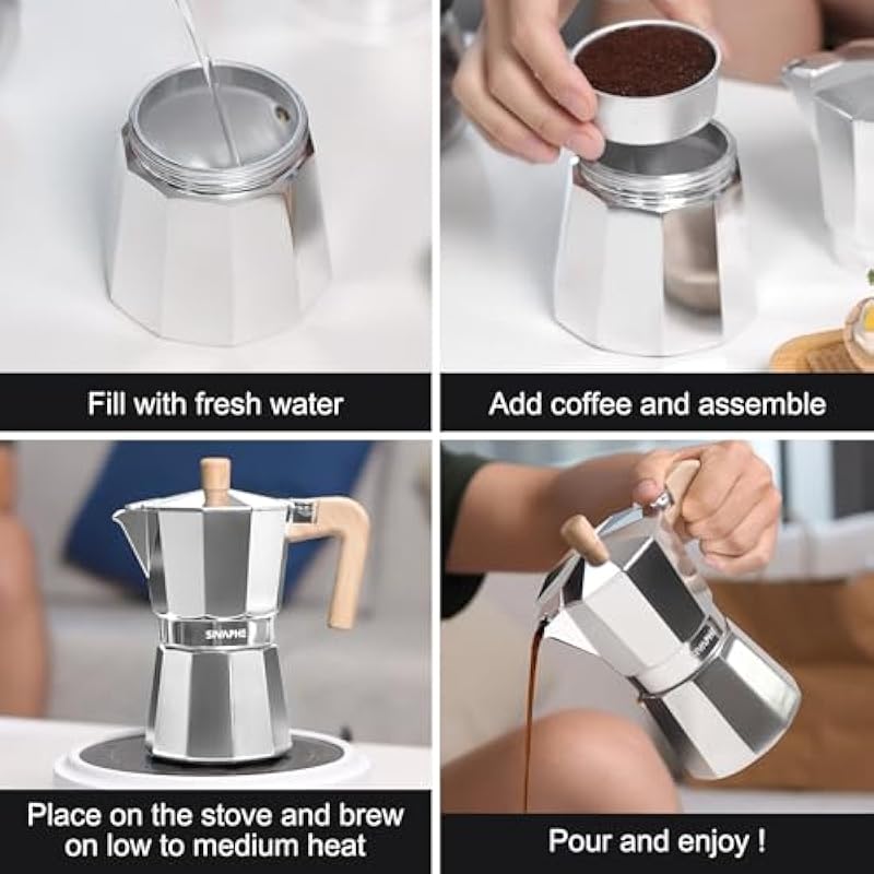 - PORTABLE: Stovetop Italian and Cuban Café Brewer for Home kitchen and Camping, drinking coffee easily and Save money.