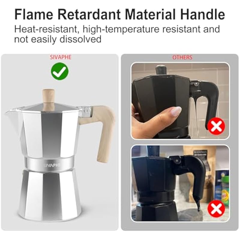 - MOKA COFFEE POT: Sivaphe aluminum moka pot available in 3/6/9 cup espresso sizes. Sliver, white, balck and red colorful coffee pots to choose.