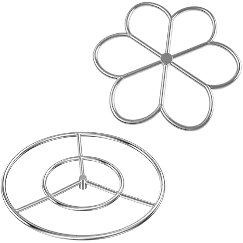 Skyflame 24-Inch Round Fire Pit Burner Ring and Flower-Shape Burner Ring for Fire Pit, Natural Gas & Propane Fireplace
