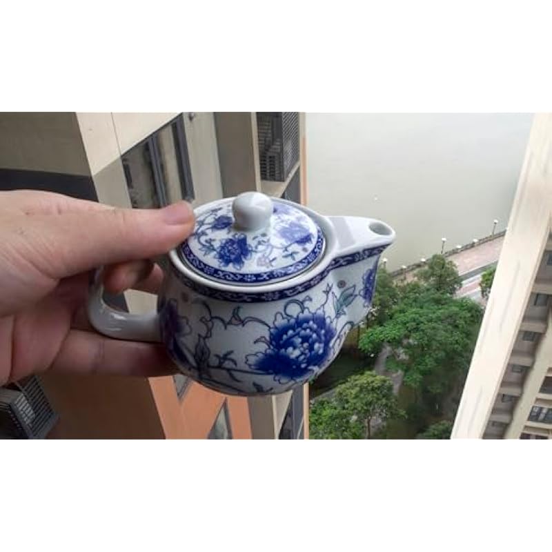 Small Porcelain Teapot, 9oz Tea Pot with Stainless Steel Infuser Classical Chinese Penoy Flower (Blue-and-white Penoy)