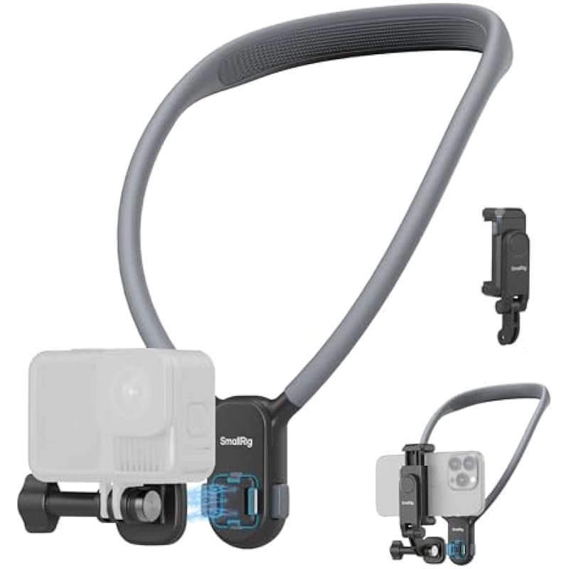 SMALLRIG Magnetic Neck Mount for Action Cameras & Phones, Comfortable POV Shooting Support with Universal 2-Prong Adapter and Phone Holder, 5128