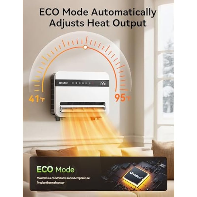 - 2S Fast Heating & Multiple Modes: The GiveBest wall space heater heats up more efficiently with up to 1500W working power, reaching your desired temperature immediately, letting you feel fast, balmy heat straight away. Choose from 5 heating modes ECO, P3(1500W)/P2(1200W)/P1(900W), FAN Only according to your needs