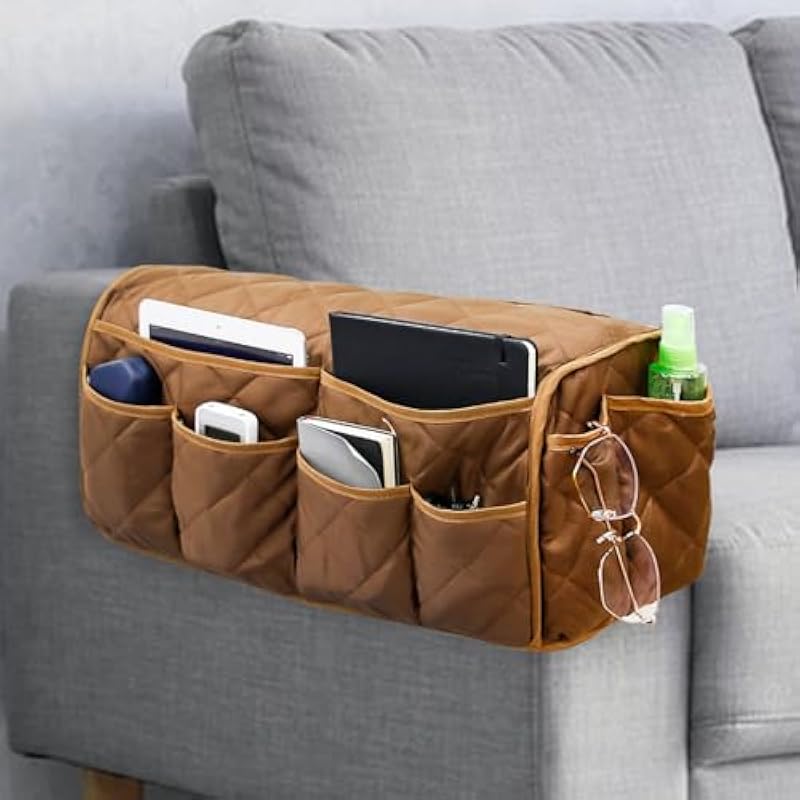 Sofa Armrest Organizer Non-Slip Arm Chair Bedside Caddy Storage Organizer for Recliner Couch with 14 Pockets for Cell Phone TV Remote Control Magazines (Brown)