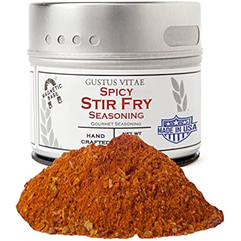 Spicy Stir Fry Seasoning | Authentic Artisanal Spice Blend | All Natural, Non GMO | Hand Made in Small Batches | Made in USA | Sustainably Sourced, Ultra Premium Gourmet Seasoning | GLP-1 Friendly | No MSG | Deluxe Spice Mix | Magnetic Tin | Gustus Vitae | #21